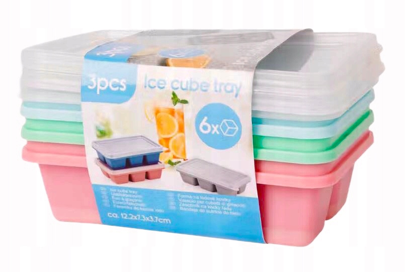 на 6 кубиків льоду зі зручною кришкою. У наборі 3 таких форми.