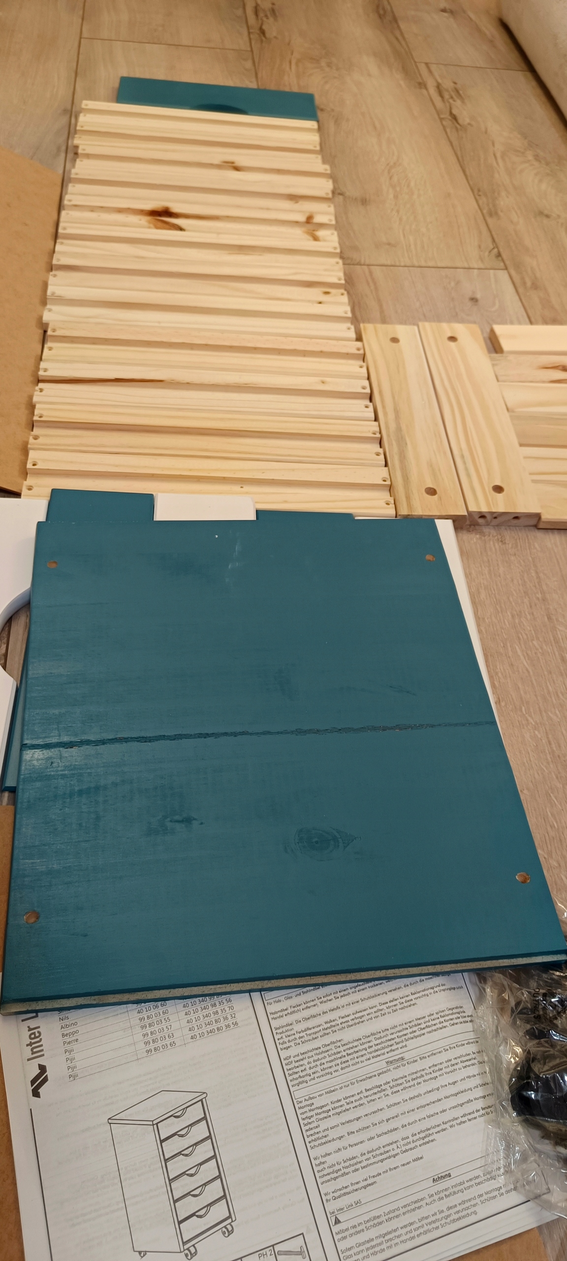 Inter link container on wheels - container on wheels with 6 drawers - office container - cabinet on wheels - a dresser with drawers - solid pine wood - blue/white
