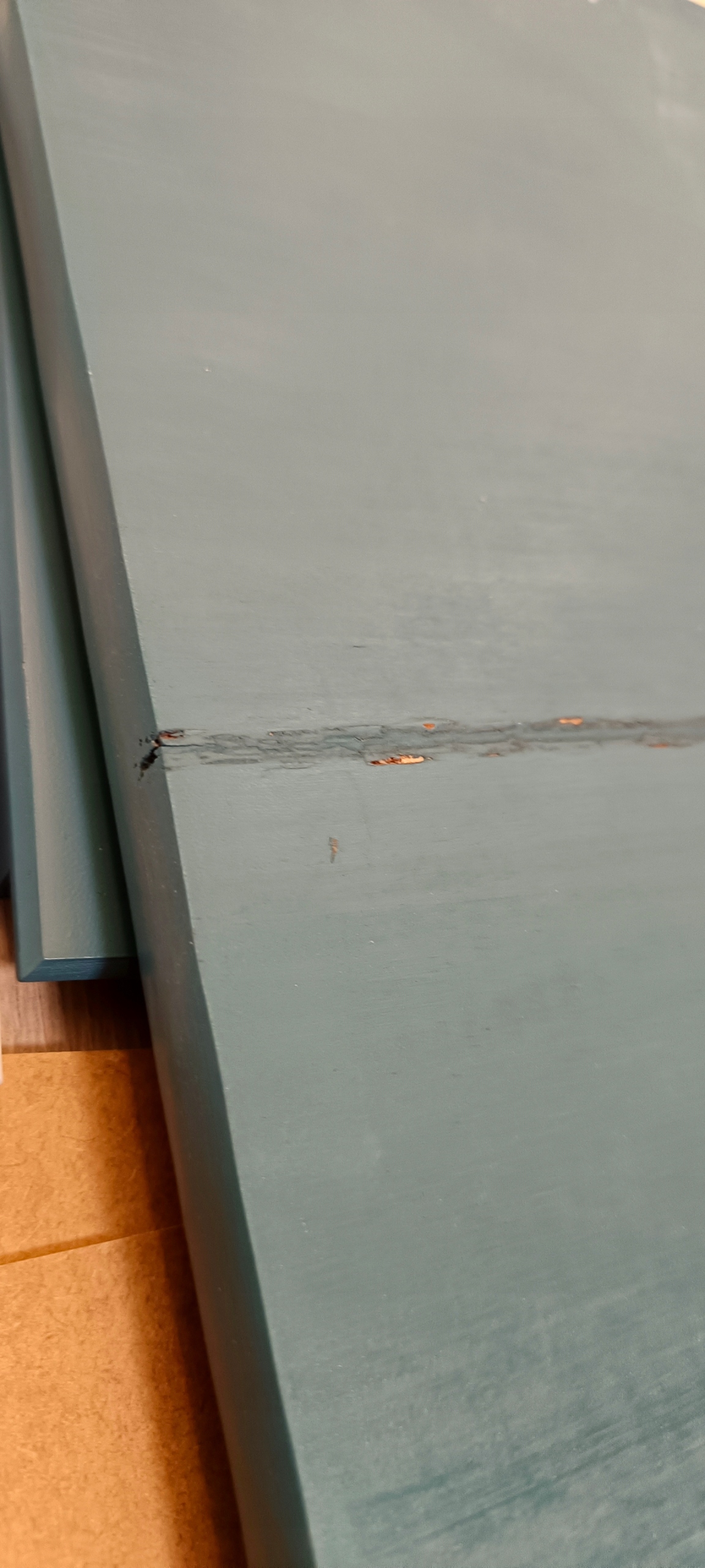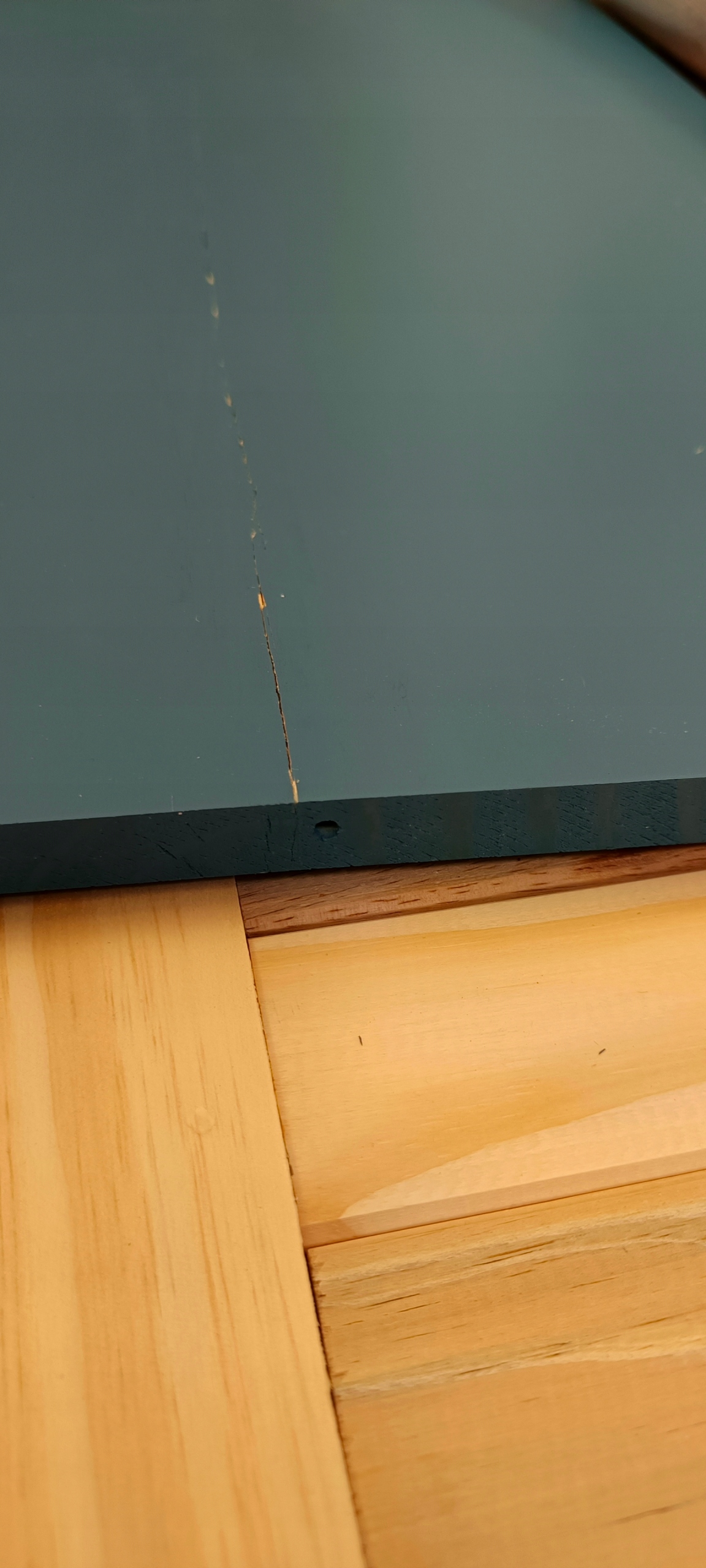 object has a crack of a side wall, a mate It will strengthen after folding, and the factory defect on the Верхня лічильниця зсередини, яка не буде видно після складання контейнера, вона є суміжною деревиною, корисною для незначного ремонту.