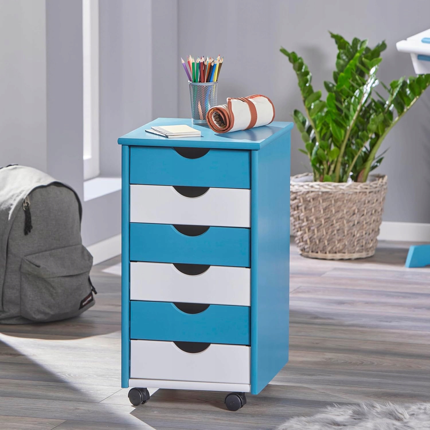 контейнер для ланки на колесах - контейнер на колесах з 6 ящиками - офісний контейнер - шафа на колесах - комоди з ящиками з ящиками - синя сосна - синя/біла