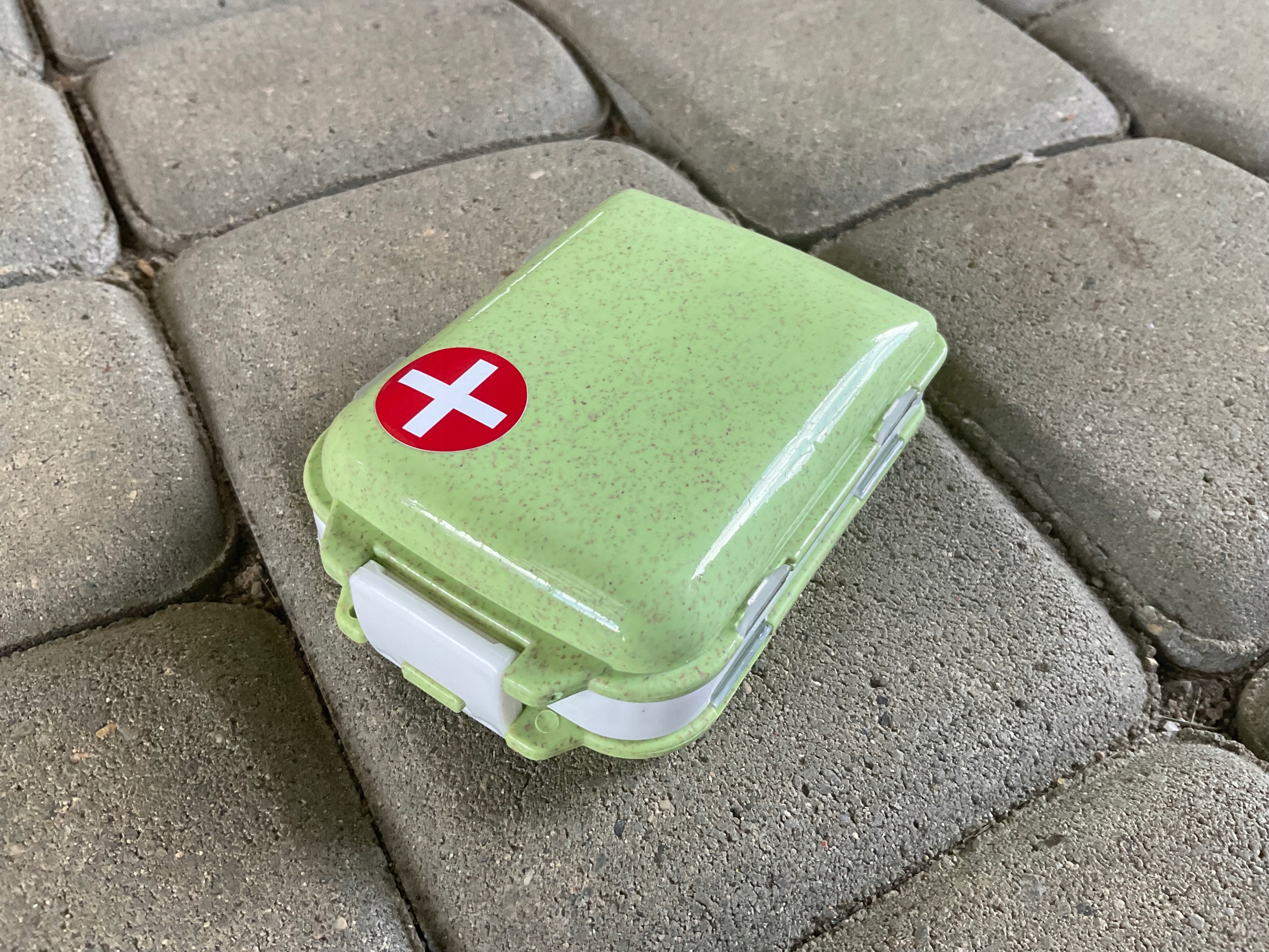 Коробка розкривається на три частини. 8 відділень для розділення таблеток, пластирів, дрібних предметів.