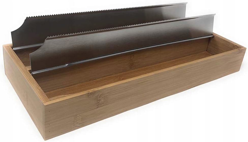 Вставка для ящика, дозатор для харчової та алюмінієвої фольги, оснащений 2 відділеннями, виготовлений із бамбукового дерева та сталі, розміри: 33,2x13x5,5 см