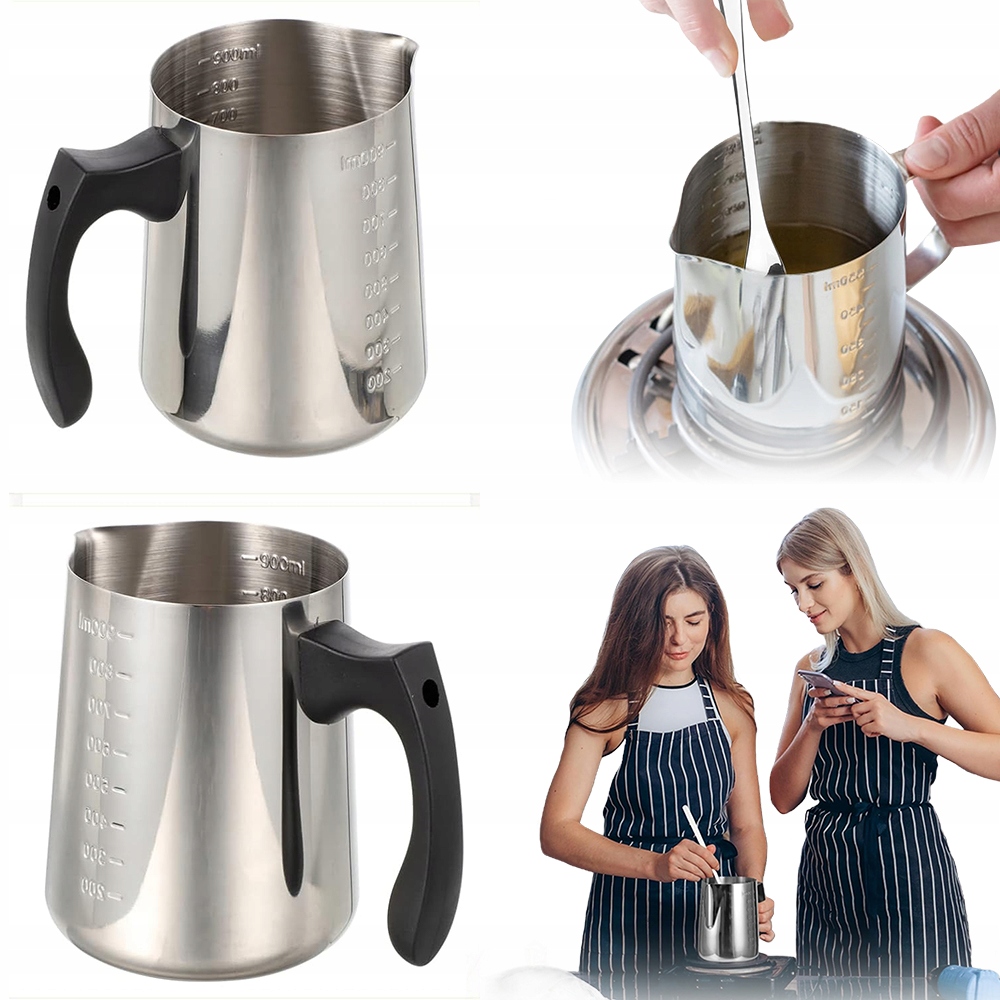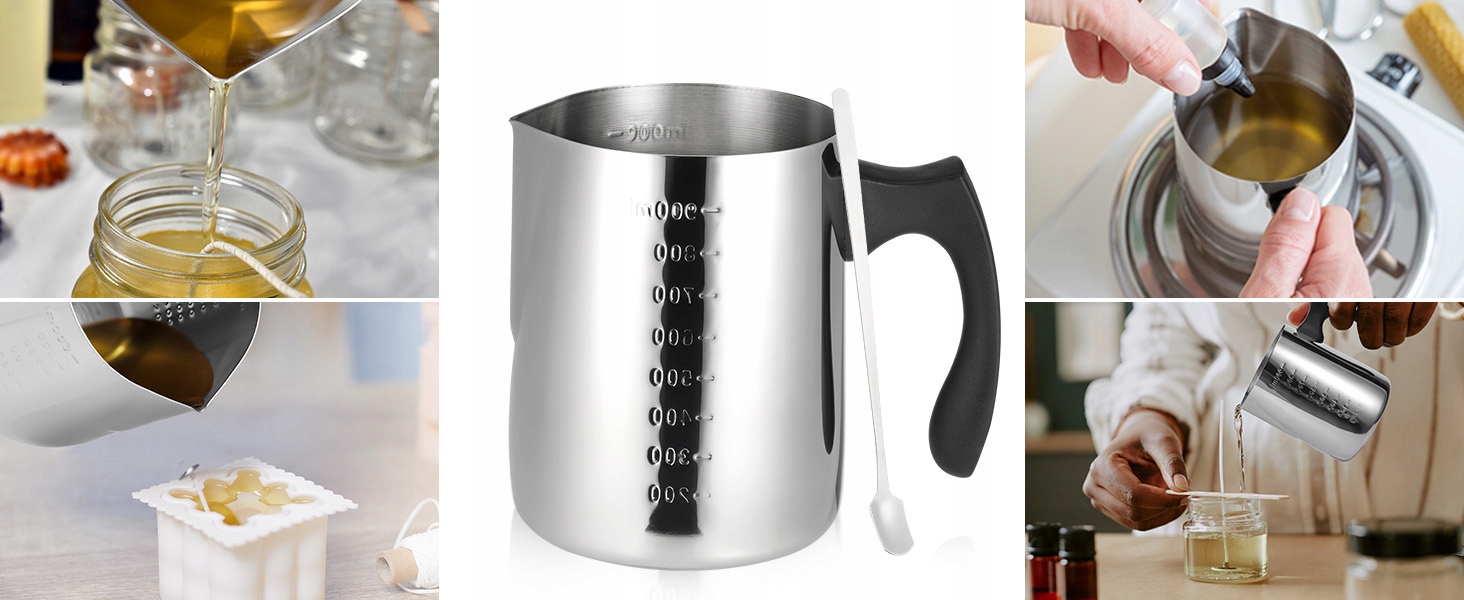 КОНТЕЙНЕР ДЛЯ ВОСКОПЛАВЛЕННЯ, ТІГЛЬ ДЛЯ ПРОФЕСІЙНИХ СВІЧОК, 900 МЛ З ГРАДУЄЮ + ЛОЖКА