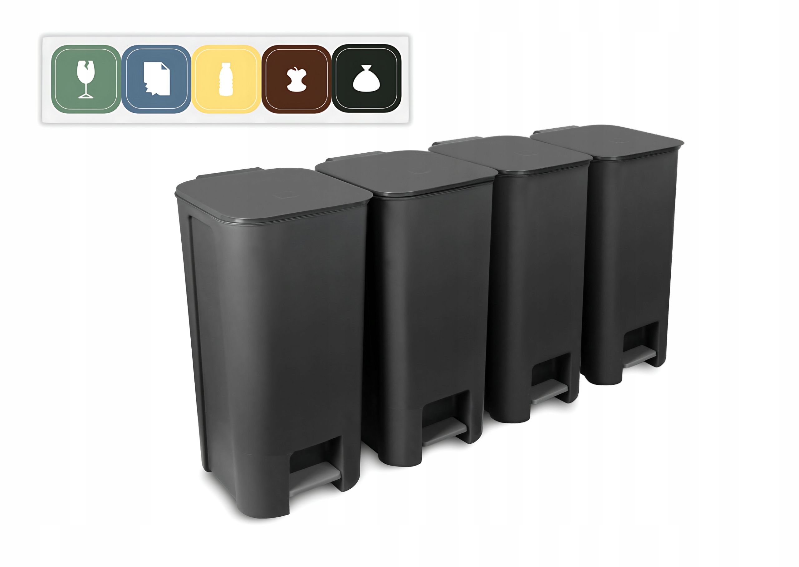 Запровадьте порядок та екологічні рішення у своєму дому чи офісі завдяки набору для розділення сміття, що складається з трьох контейнерів із наклейками, кожен з яких Ємкість 40 літрів, елегантного темно-графітового кольору. Цей практичний набір не тільки полегшує розділення сміття, але й додає стилю та сучасності будь-якому інтер'єру.
