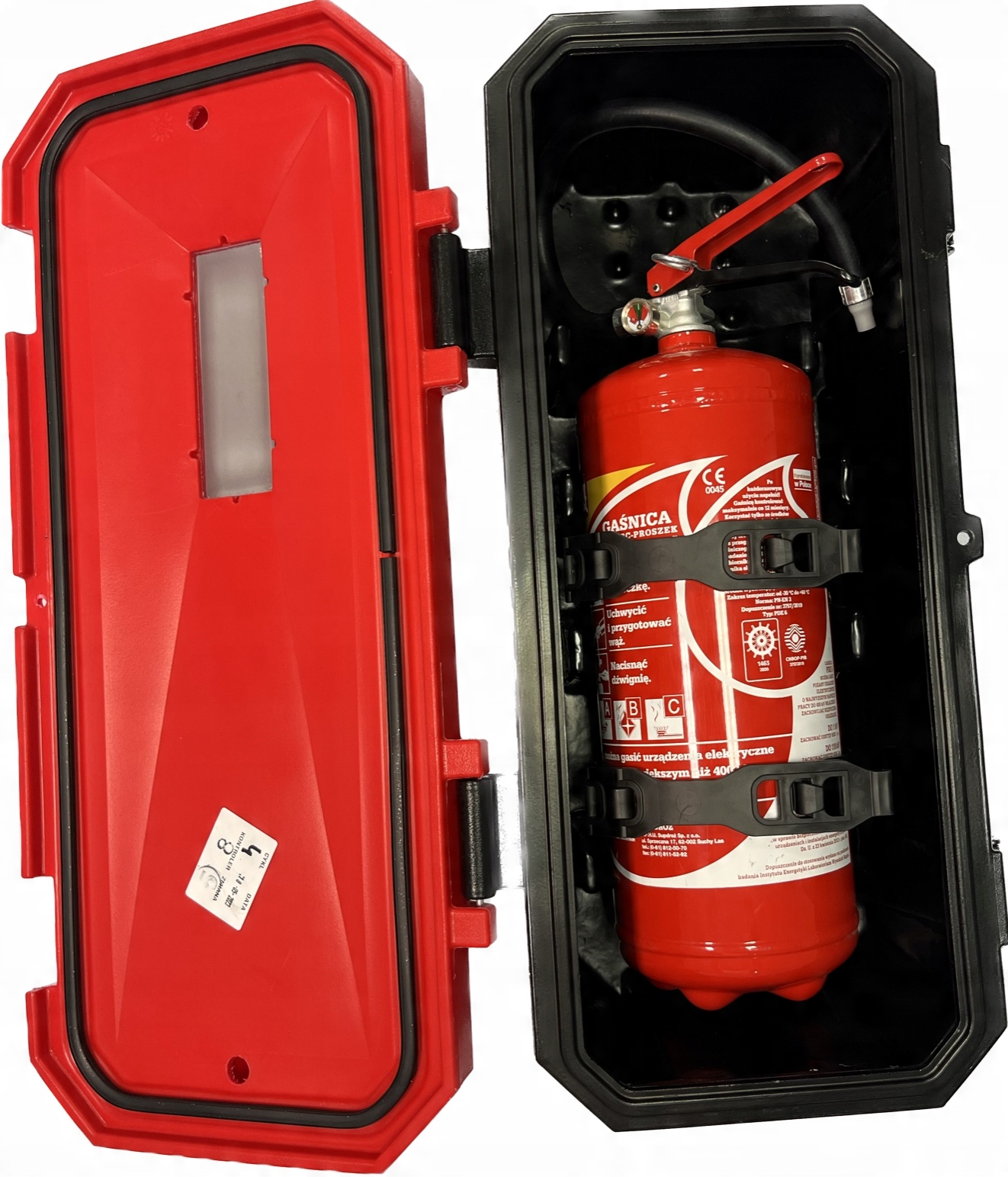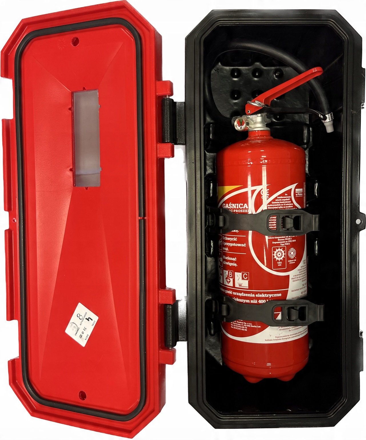 Герметичний контейнер для зберігання та захисту порошкового вогнегасника 6 кг, пристосований для зовнішньої установки. p>