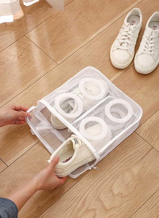 - ЗАХИСТ ВЗУТТЯ ТА ПРАЛЬНОЇ МАШИНИ - безпосереднє прання взуття в пральній машині може призвести до пошкодження взуття та машини. Мішок для прання взуття створює захисний бар’єр, який мінімізує ризик ударів і тертя.