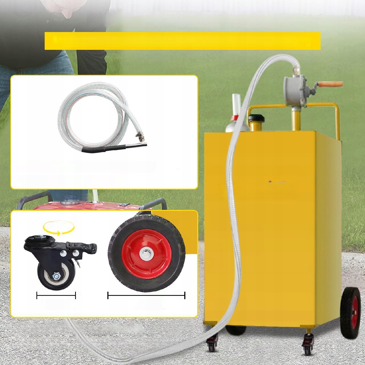 Мобільний резервуар 132 л, виготовлений з жовтої нержавіючої сталі, є надійним рішенням для транспортування та розподілу палива. Клацніть купити зараз та покращити заправку там, де вам це потрібно!
