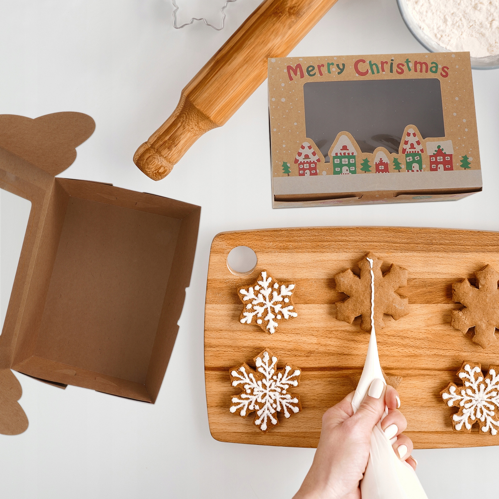 ✅ Різдвяні тортники з різдвяними мотивами, в які можна упакувати торт та солодощі для своїх близьких! Для них характерні унікальні візерунки. Помірної місткості, може вмістити нугу, печиво, шоколад тощо.