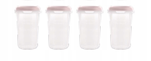 Повний набір з 4 герметичних градуйованих ємностей ємністю 330 мл кожна з красивими блакитно-рожевими кришками. Особливо рекомендується для зберігання, розігрівання, заморожування або транспортування грудного молока, перших дитячих каш, а також усіх видів твердої та рідкої їжі.