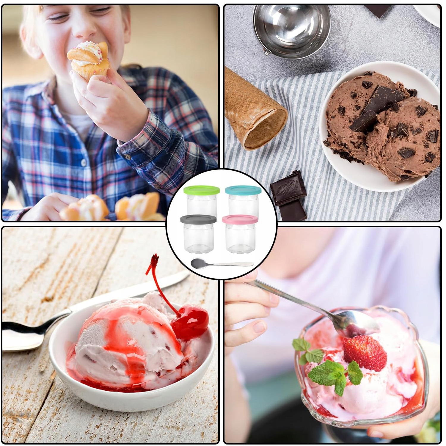 ✅【Кілька смаків і партій】: контейнери для морозива з 4 упаковок дозволяють покупцям створювати більше смаків або партій морозива. Користувачі можуть приготувати кілька смаків одночасно, щоб задовольнити різні смакові уподобання, або приготувати кілька порцій морозива, що ідеально підходить для великих сімей або вечірок.