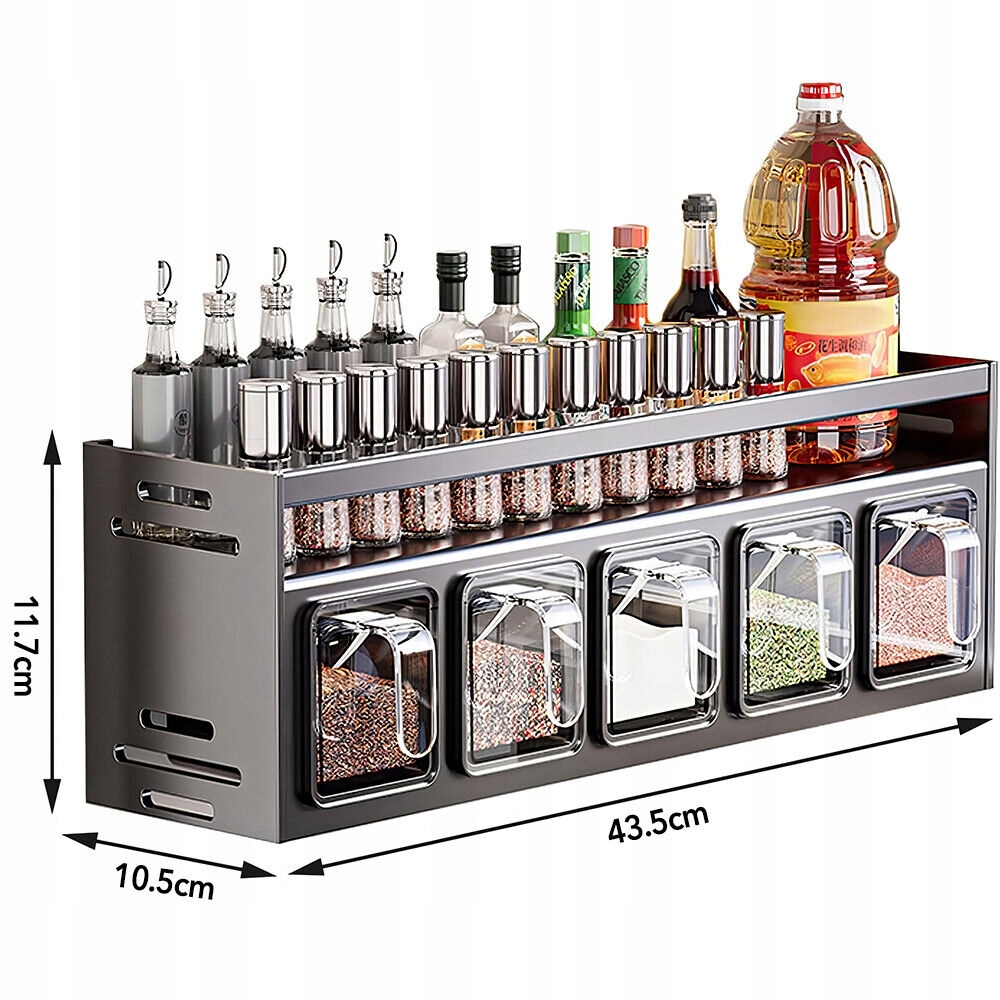 2. Контейнер для спецій великої місткості: контейнер для спецій із чотирма відділеннями має розміри 35 × 10,5 × 11,7 см, а контейнер для спецій із п’ятьма відділеннями має розміри 43,5 × 10,5 × 11,7 см. Ємність для спецій великої місткості ідеально підходить для зберігання солі, цукру, перцю, сушених трав, кави, спецій та інших спецій.