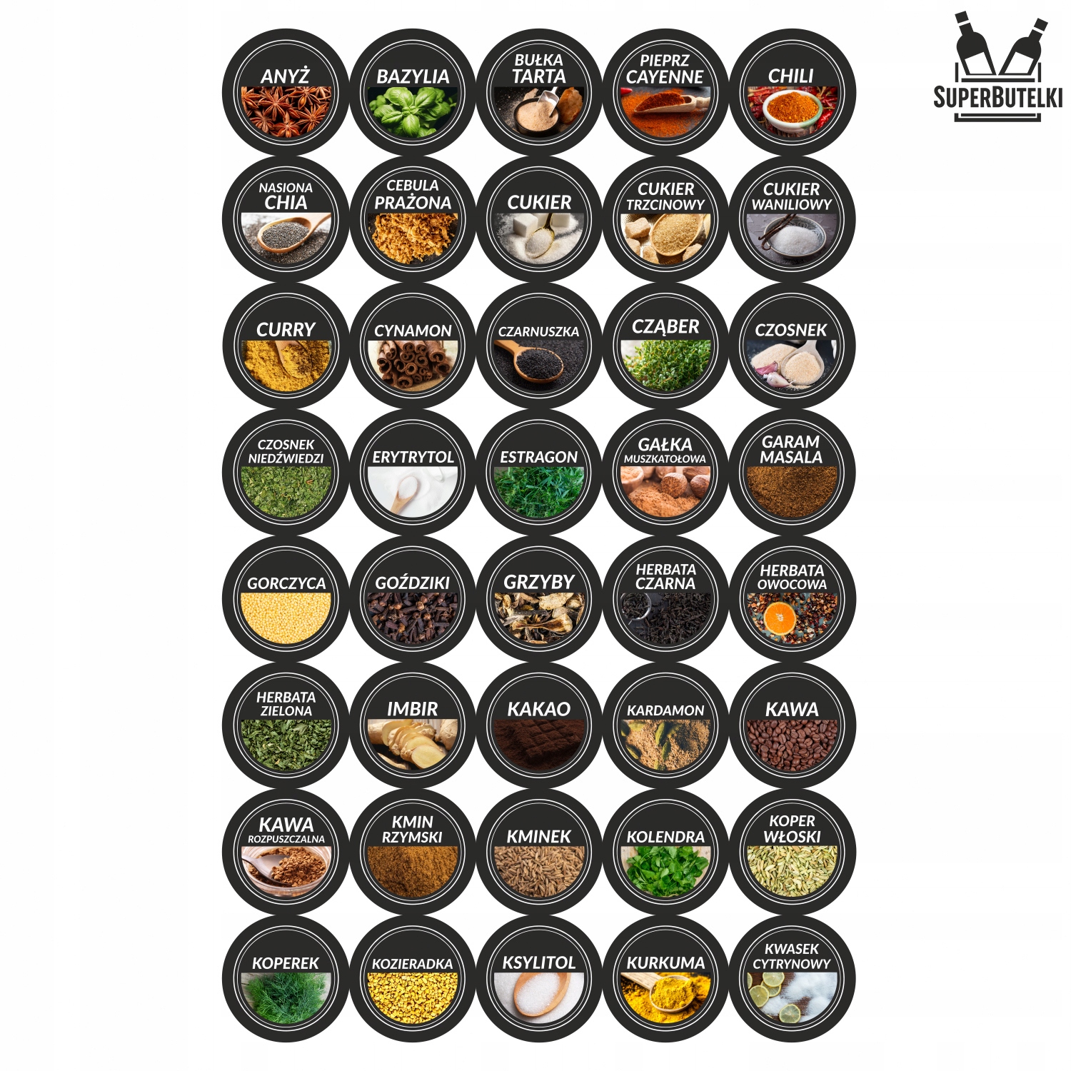 🏷 ️ 200 барвисті, розбірливі етикетки з іменами спецій - кінець хаосу - кожна спеція з власною наклейкою та графікою!