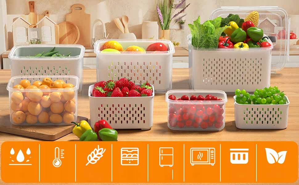 💎 Якість їжі та багаторазового використання: контейнери для зберігання фруктів виготовлені з поліпропілену, не містять BPA і є багаторазовими. Наші контейнери для холодильника є екологічно чистими. Ви можете зберігати їжу в контейнерах без будь -яких турбот. Більше не перекочуючи в холодильнику. Ви можете легко знайти та звернутися до улюблених страв. Контейнери для зберігання фруктів у холодильнику мають знімні ситери, які спрощують процес промивання, напруження та зберігання їжі. Цей унікальний дизайн зменшує зайву вологу, збільшує циркуляцію повітря та мінімізує харчові відходи. Зберігайте їжу свіжою і зменшіть їжу.