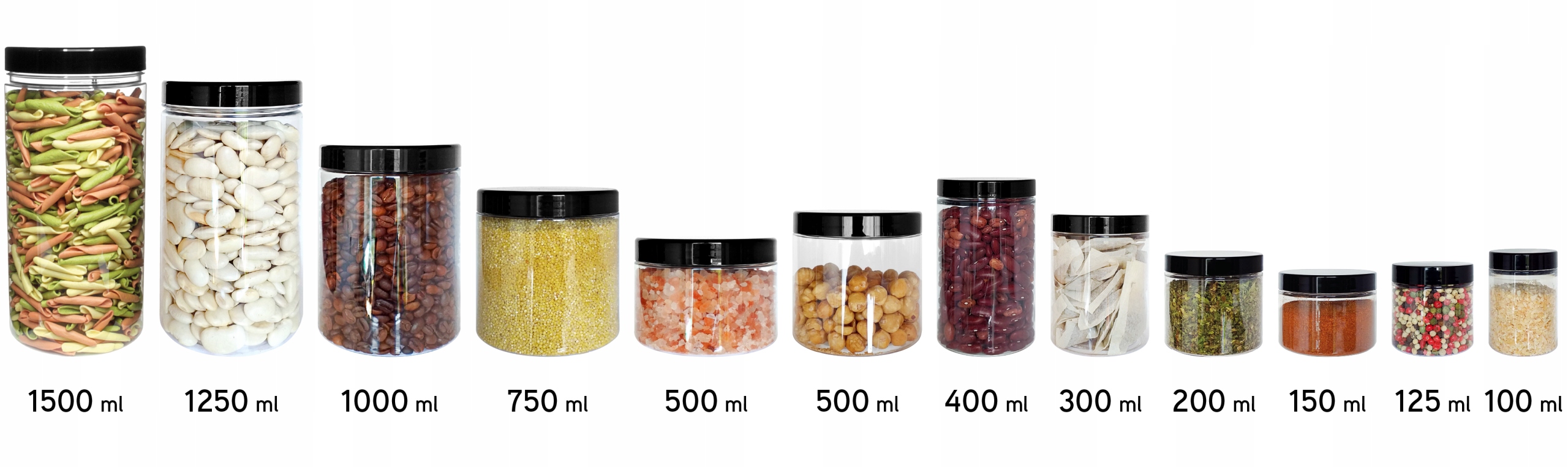 На фотографії нижче ми представляємо всі контейнери з цієї серії, щоб полегшити порівняння їх розміром .