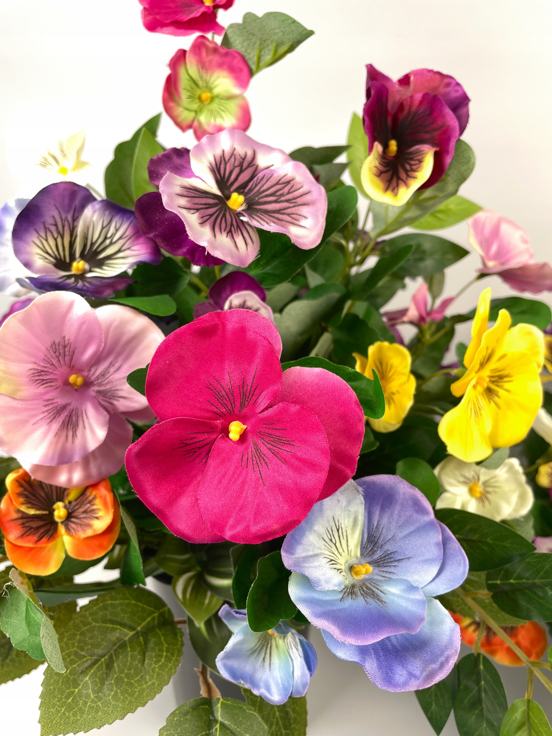 - особливості : композиція здійснювався у стабільній обтяженій основі, що забезпечує його міцність та захист від перекидання вітром. Вони грають у багатоколених панів - одна з найбільш символічних квітів, яка була пов'язана з пам’яттю, роздуттям та тугою протягом століть. Їх ніжні, але виразні пластівці в різних відтінках фіолетового, рожевого, жовтого, білого та помаранчевого кольору надають композиції виняткову легкість та природність. Комплемент - це тонкі зелені листя, які додають глибини та гармонію.