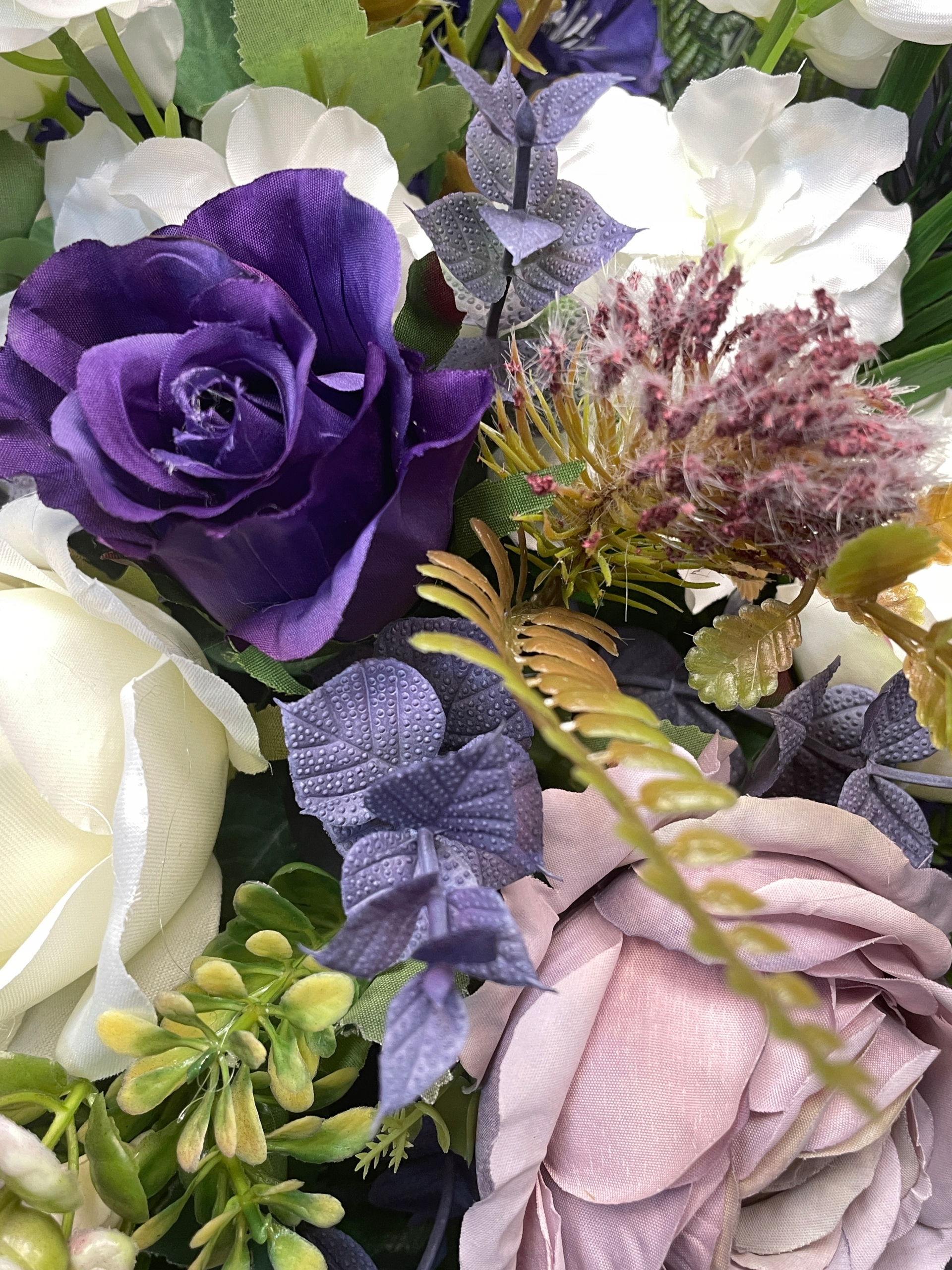 • roses in shades of white, cream, lavender and deep purple - classic symbol of love respect