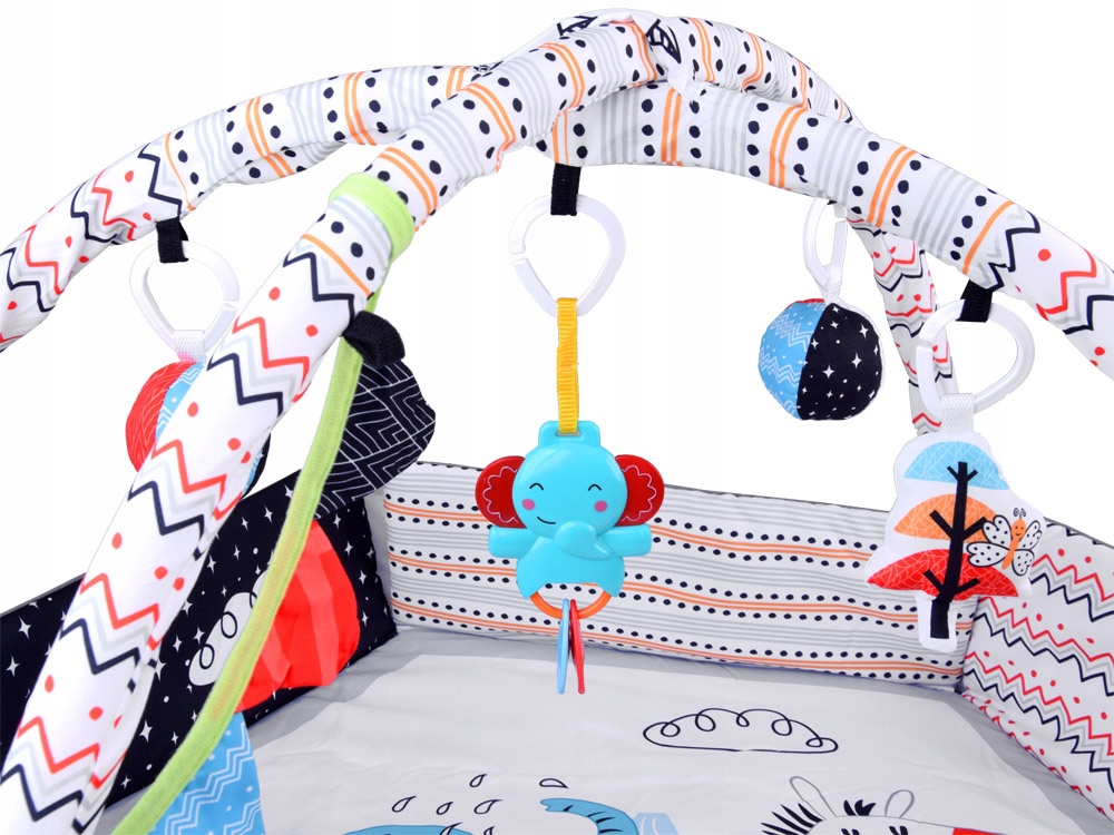 Контрастний розвиваючий килимок для дитини з безліччю аксесуарів для спостереження та гри, підходить для дитини з перших днів життя. Килимок розроблений таким чином, що він буде рости разом з потребами дитини. Спочатку це буде ідеальне місце для спостереження, а з часом стане чудовим ігровим майданчиком. Килимок виготовлено з матеріалу, який легко чистити, і має чудову графіку та кольори.