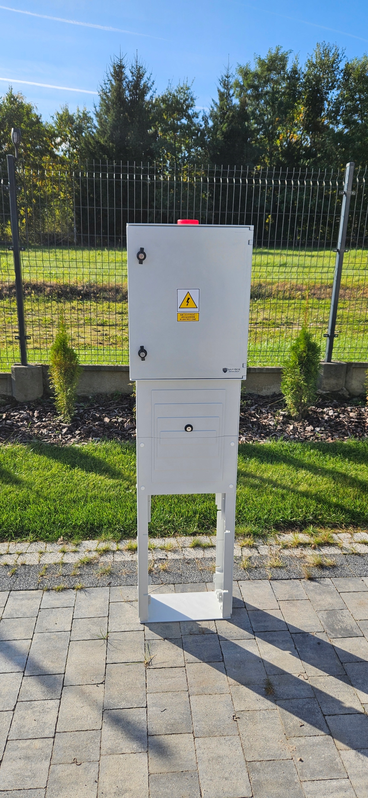Пристрій керування виконано в термозагартованому корпусі з ступінь герметичності IP66, розміри 50х400х195мм, монтується на заглибний фундамент висотою 1000мм або на цоколь 500мм для установки на резервуар насосної станції (вибирається при замовленні).