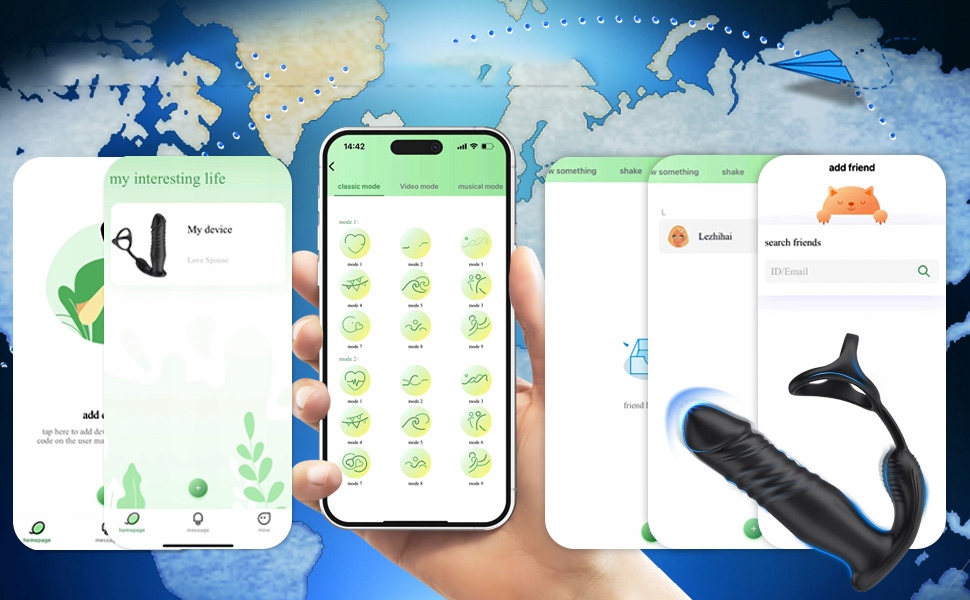 💖💖 Поділіться за допомогою програми, різних режимів: Виплетіть оснащений дистанційним керуванням за допомогою програми, за допомогою якого ви можете керувати різними режимами, такими як рекомендований режим, режим відео, режим саморобства, звуковий режим тощо. Цей вібратор кільця є чудовим вибором для пар і може бути віддалено керувати додатком, незалежно від відстані, незалежно від відстані.