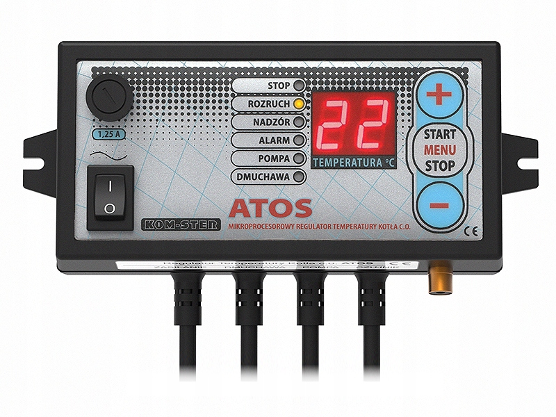 Регулятор Atos призначений для керування вентилятором в котлах центрального опалення. і для включення циркуляційного насоса. Оснащений додатковим виходом для підключення кімнатного термостата, він також дозволяє підтримувати задану температуру в кімнаті. Контролер має багато практичних функцій. Він характеризується простим управлінням і надійністю в роботі.