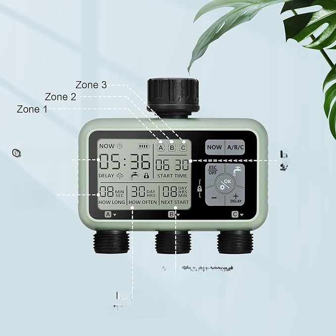 ➡️ Низьке енергоспоживання: цей інтелектуальний контролер зазвичай працює лише від 2 батарейок АА для всього сезон.