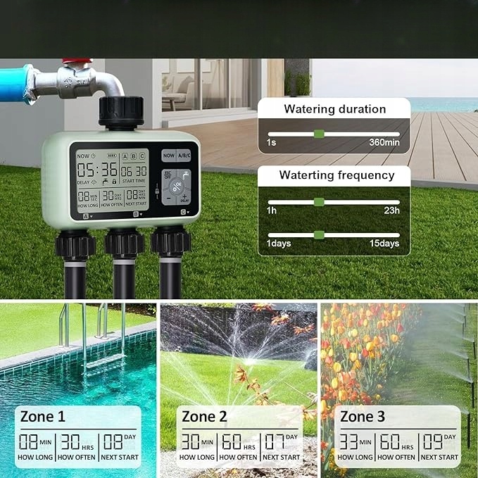 ⏩ Ви контролюєте зрошення свого саду: Електронний контролер дозволяє точно встановлювати параметри поливу, такі як тривалість, частота та час початку поливу. Завдяки цьому ви можете налаштувати полив відповідно до конкретних вимог різних рослин у вашому саду.