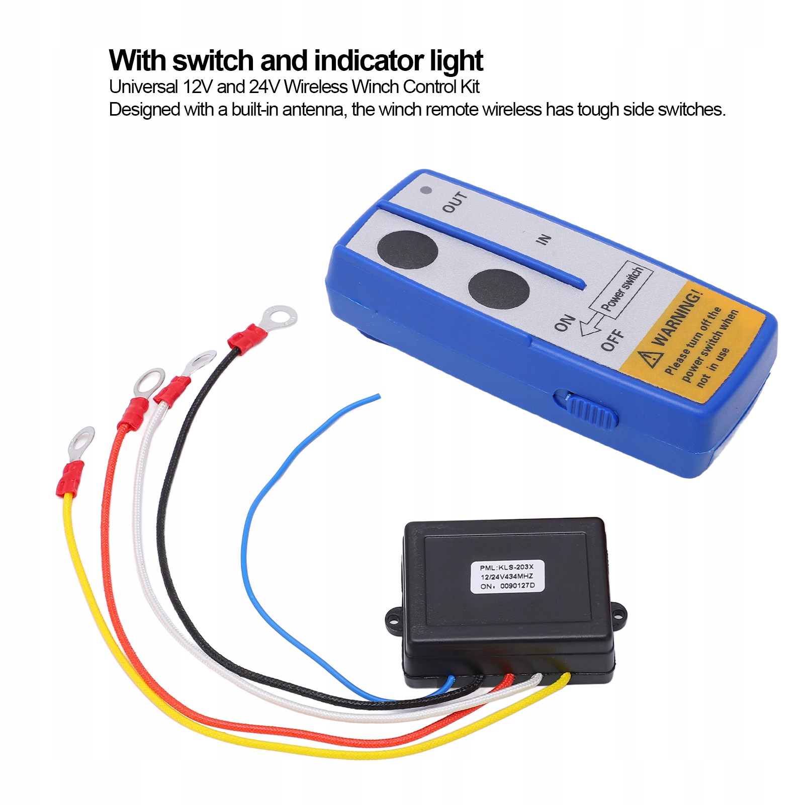 4. З перемикачем і світловим індикатором: Універсальний комплект бездротового керування лебідкою 12 В і 24 В із вбудованою антеною, пульт дистанційного керування лебідкою постачається з потужним бічним перемикачем.