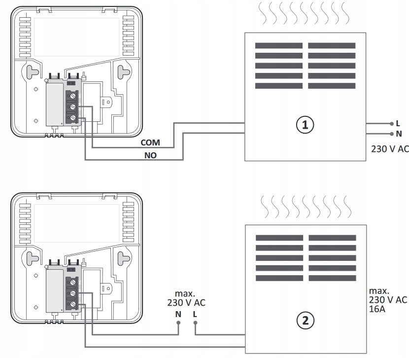 - Максимальний струм навантаження : Макс. 250 В змінного струму, макс. 16A