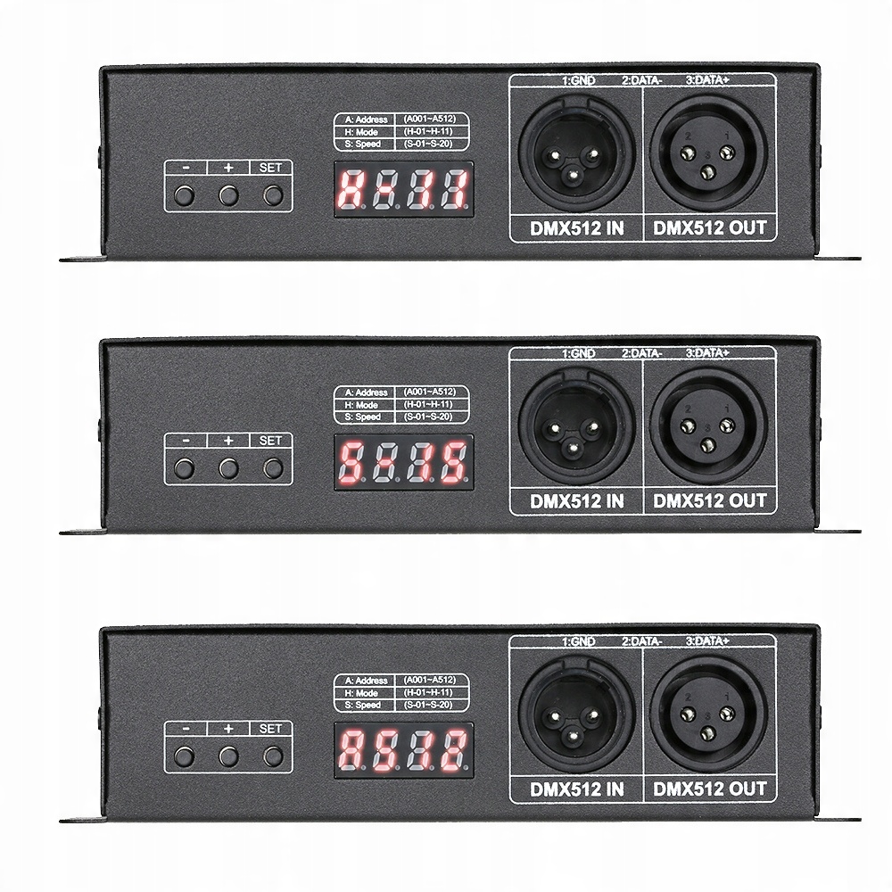 ЛЕГКИЙ У КОРИСТУВАННІ: має цифровий дисплей для відображення коду адреси, режиму та швидкості, має 3 кнопки для встановлення адреси. Він має два сигнальні інтерфейси XLR-3 і RJ45, максимальний вихідний струм досягає до 4A на кожному каналі, дуже простий у використанні.