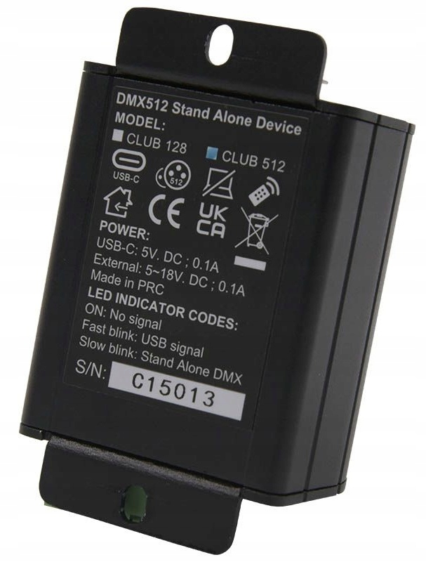 Інтерфейс DMX Chromateq Club 512 сумісний із системами Windows і Mac, а також із широким спектром програмного забезпечення DMX. Підключається до комп'ютера через USB кабель. Міцний металевий корпус ідеально захищає всі компоненти інтерфейсу. 3-контактний роз'єм XLR з фіксатором гарантує постійне з'єднання з кабелем DMX. Chromateq Club 512 також має знімний клемний блок для легкого та швидкого архітектурного встановлення та великих інтеграційних проектів.