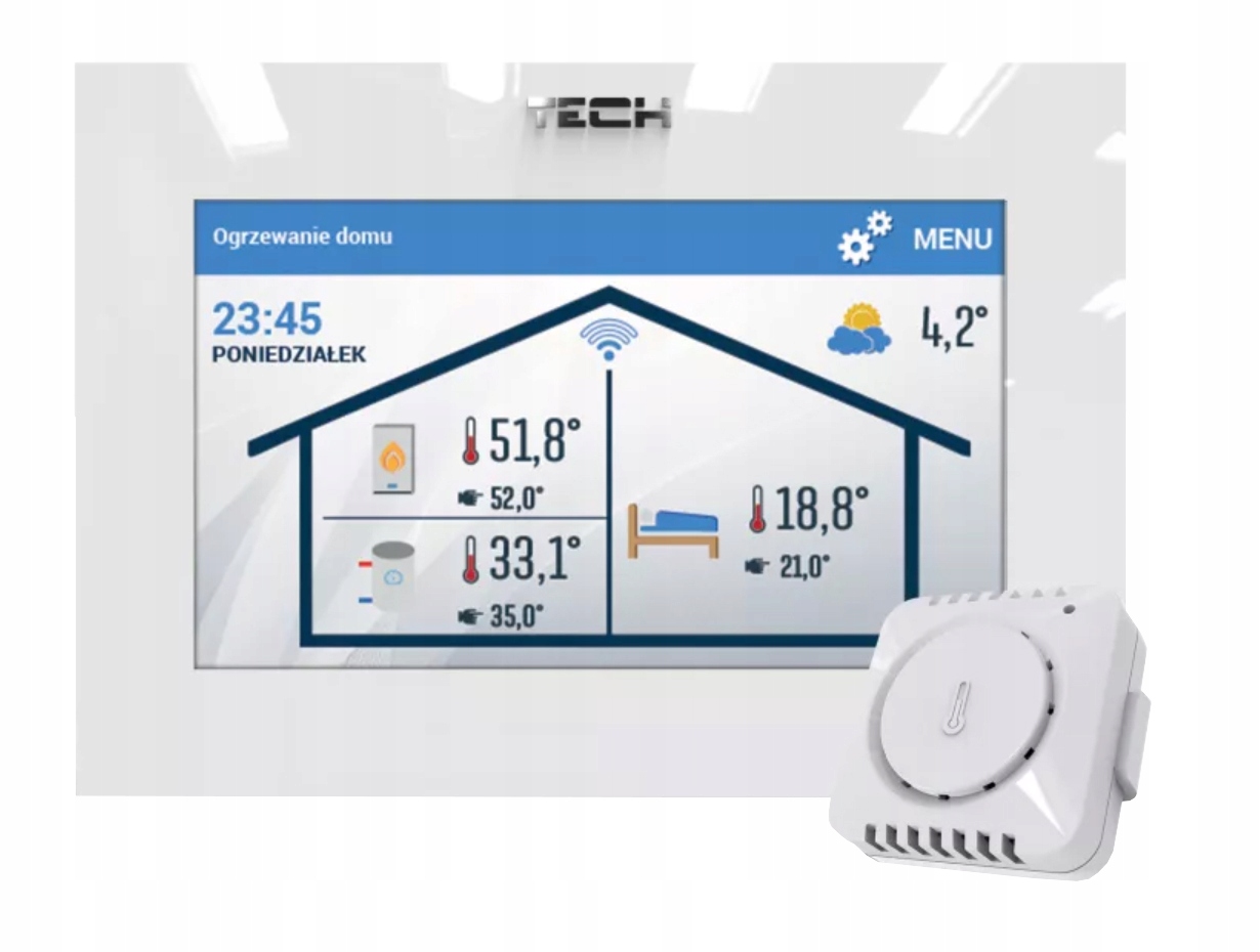 ⭐ Використання регулятора кімнати забезпечує інтелектуальне обслуговування встановленої кімнатної температури за допомогою автоматичного пропорційного регулювання встановленої температури котла. Регулятор має можливість адаптувати параметри алгоритму управління.