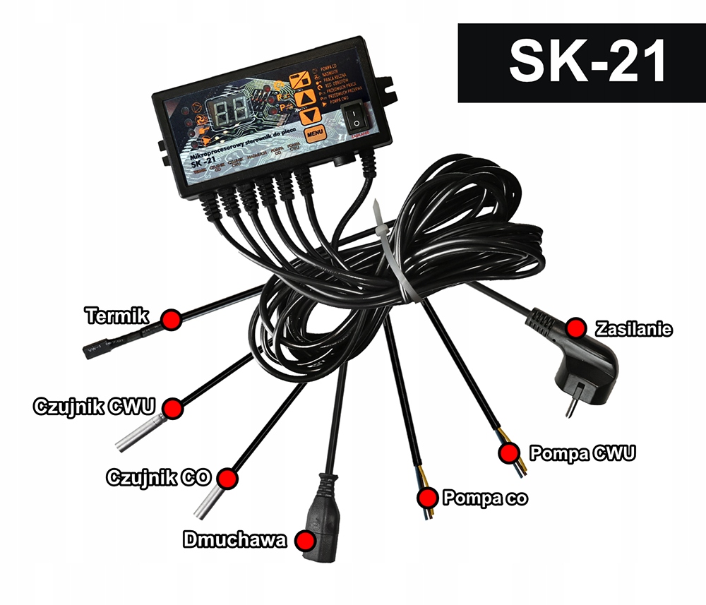 Терморегулятор SK-21 використовується для керування роботою нагнітача та насоса центрального опалення. і центральний насос гарячої води.