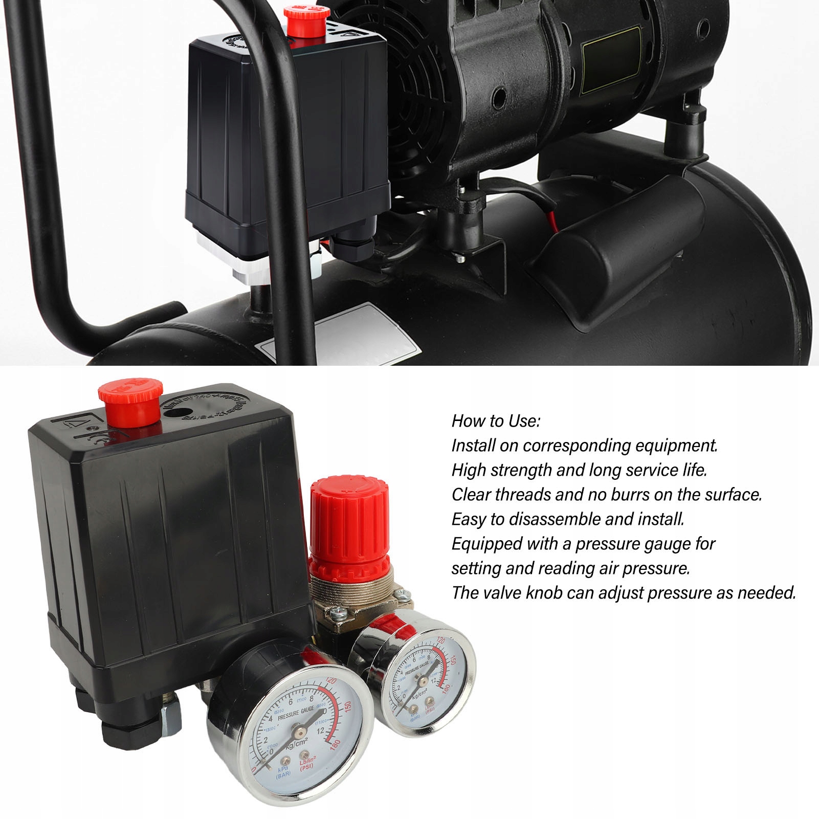 1. Чудовий дизайн: висока міцність, тривалий термін служби. Економте енергію повітряного компресора. Прозора нитка, поверхня без задирок. Легко знімається та встановлюється. 2. Простота в експлуатації: легко збирати та розбирати. Оснащений манометром, який можна встановити та зчитувати. Оснащений ручкою клапана, що дозволяє регулювати тиск за потреби. 3. Кращий контроль: Реле тиску повітряного компресора є важливим компонентом під час встановлення або підключення повітряних компресорів або повітряних шлангів. Основною функцією клапана є регулювання тиску зупинки та запуску повітряного компресора. 4. Ідеальна посадка: продукт забезпечує точний контроль повітря для досягнення найкращих результатів. Стандартний впускний і вихідний отвір підходить майже для кожного типу. 5. Чудові матеріали: реле тиску повітряного компресора в основному виготовлено з високоякісної латуні, нержавіючої сталі та матеріалів ABS, які мають гарну довговічність.