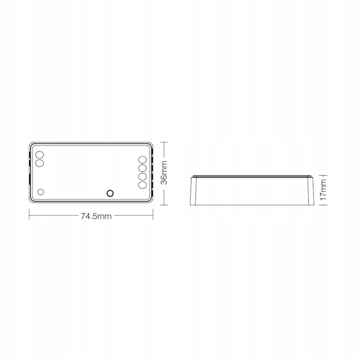 Зональний контролер Miboxer MiLight FUT035s+ призначений для управління одноколірними або двоколірними світлодіодними стрічками CCT. Метод роботи можна легко встановити за допомогою кнопки SET. Напруга живлення для контролера - DC 12-24V, максимальний струм - два канали, 6A на канал (макс. для всього контролера 12A). Основними відмінностями від старого контролера FUT036M є функція автоматичної передачі сигналу. набагато менший розмір, можливість голосового керування після використання маршрутизатора WL-Box1, можливість змінювати частоту ШІМ.