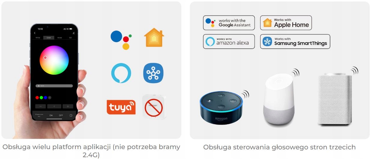 Контролер дозволяє керувати кольором, яскравістю та динамічними ефектами, підтримує автоматичну передачу радіочастотного сигналу (автопереадресація), синхронізацію кількох пристроїв (автосинхронізація), а також функцію «Не робити». Режим «турбувати». Ідеально підходить для систем, де важлива сумісність із різними платформами (Apple HomeKit, Google Home, Alexa, Tuya, SmartThings).