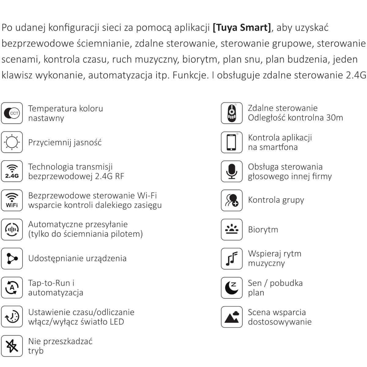 Після належної конфігурації мережі ми можемо користуватися можливістю бездротового затемнення, групового керування контролери, управління встановленими сценами, таймер, реакція на звук (екран телефону повинен бути встановлений на вкладку МУЗИКА), робота за біоритмом, розклад сну та пробудження, функція запуску одним натисканням, автоматизація роботи та ін. p>