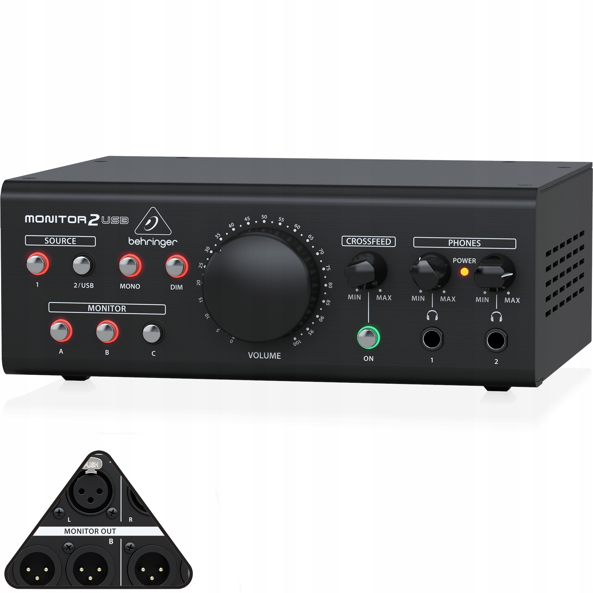 4 Monitor2USB робить об'єм, керований VCA, вибором джерел, телефонами та контролем монітора під рукою. Завдяки Amazing Monitor2UsB ви можете вибрати з 3 наборів активних моніторів студії, 2 різних стерео -джерел та USB -входів для вашої DAW - для створення потужних, не стандартних моніторних сумішей - все в бездоганній, аудіофільній якості звуку.