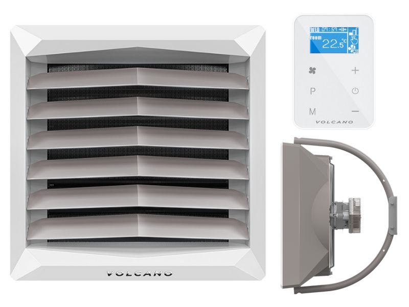 Програмований настінний контролер HMI-VOLCANO - це панель керування для всіх типів обігрівачів з двигуном EC. Він має інтерфейс із протоколом ModbusRTU для легкої інтеграції з системами автоматизації будівель (BMS).