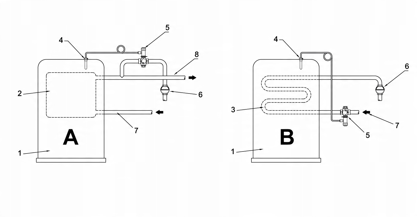 Кнопка ручного запуску має бути видимою, щоб клапан можна було відкрити в будь-який час. Для захисту від опіків спусковий гачок повинен бути спрямований у відповідну зливну лійку (модель IS). Щоб забезпечити правильну роботу клапана, не встановлюйте коліна на зливну трубу. В якості альтернативи слід використовувати зігнуту трубу з радіусом вигину, що принаймні в 3 рази перевищує діаметр труби. З міркувань безпеки рекомендується встановлювати запірну арматуру до і після арматури.