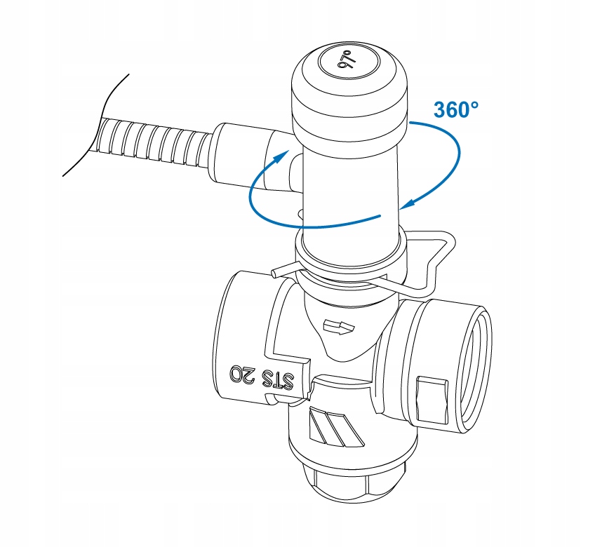 Завдяки використанню нового технічного рішення термостатична частина клапана може вільно обертатися навколо власної осі.