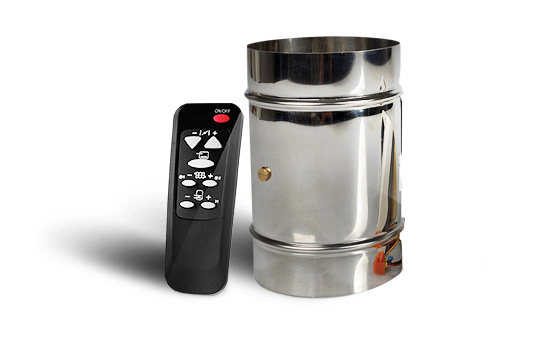 Новиною на ринку камінів є можливість управління ecoKOM 200 за допомогою пульта дистанційного керування. Це робить роботу з пристроєм набагато простішою та комфортнішою. Ще однією перевагою є ручне регулювання положення заслінки всмоктуваного повітря. Завдяки цьому користувач може дозувати повітря відповідно до власних уподобань.