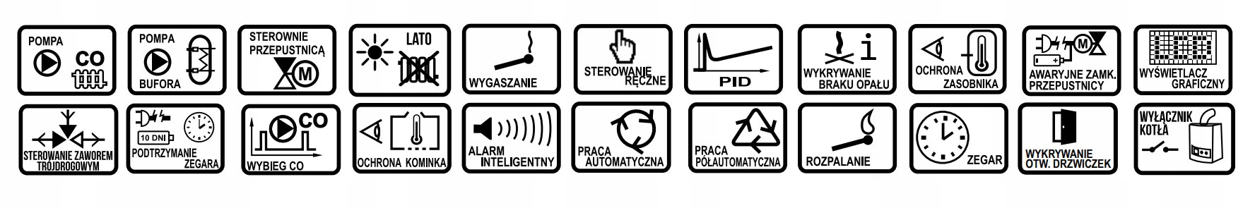 Регулятор підтримує температуру вихлопних газів на безпечному рівні. Він закриває заслінку після процесу горіння, що не дає каміну охолонути. Регулятор також контролює роботу циркуляційних насосів БУФЕРНОЇ установки в залежності від різниці температур. Він виконує додаткові функції, наприклад, вимикає додатковий котел.Управління контролером розроблено максимально просто та інтуїтивно зрозуміло. Усі функції контролера налаштовуються лише однією ручкою (система TOUCH & PLAY).