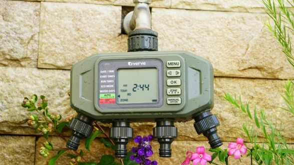 Контролер зрошення Verve дозволяє вам автоматизувати систему зрошення для економії води. Доступні параметри частоти поливу дозволяють налаштовувати під ваші індивідуальні потреби. Розчин також можна використовувати для систем розпилювального та крапельного поливу. Модель має 4 виходи - кожен з них є програмованою зоною. Для кожної зони можна запрограмувати до 4 циклів поливу. Будь ласка, використовуйте з’єднання для кранів, що входять до комплекту постачання, і виберіть відповідний розмір крана. 5 функціональних кнопок для легкого програмування. 11 доступних налаштувань частоти поливу. Час поливу від 1 хв до 360 хв на цикл. Великий РК-дисплей, який добре читається. Коли виріб не використовується, рекомендується зберігати його в прохолодному місці, захищеному від морозу та прямих сонячних променів.