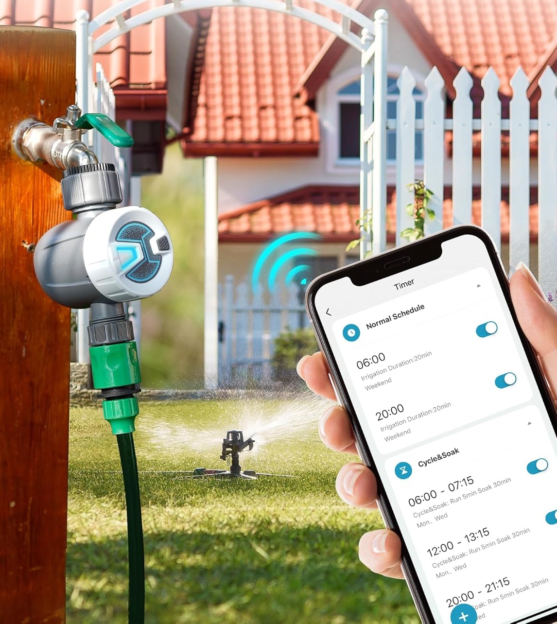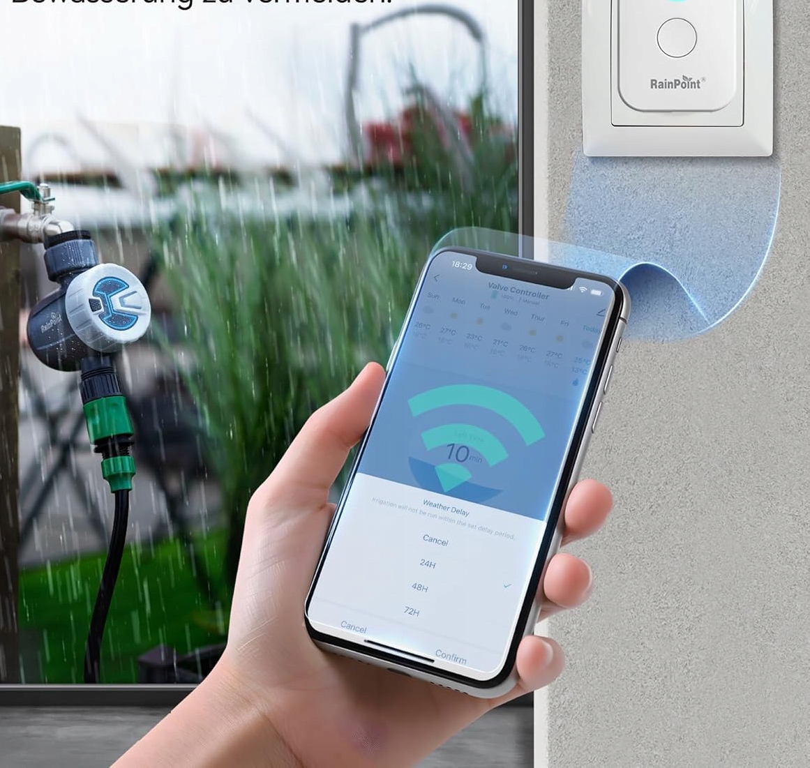 Інтелектуальний контролер поливу RAINPOINT дозволяє повністю контролювати полив саду за допомогою програми на вашому смартфоні. 2,4 ГГц Wi-Fi і Bluetooth забезпечують зручне дистанційне керування, навіть коли ви не вдома. Пристрій пропонує 2 режими поливу і програматор часу, щоб ви могли налаштувати полив під потреби рослин. Це економічне та практичне рішення для садів, теплиць і газонів.