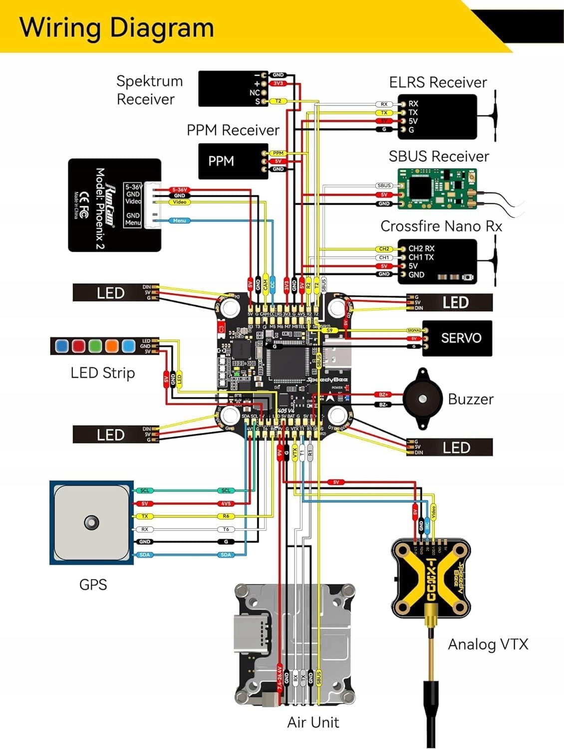 - [Конфігурація FC і ESC через BT] За допомогою програми SpeedyBee ви можете перетворити свій телефон на універсальний конфігуратор і налаштовувати свій квадроцикл будь-де та будь-коли. Насолоджуйтеся легким способом польоту з повним бездротовим налаштуванням FC ESC.
