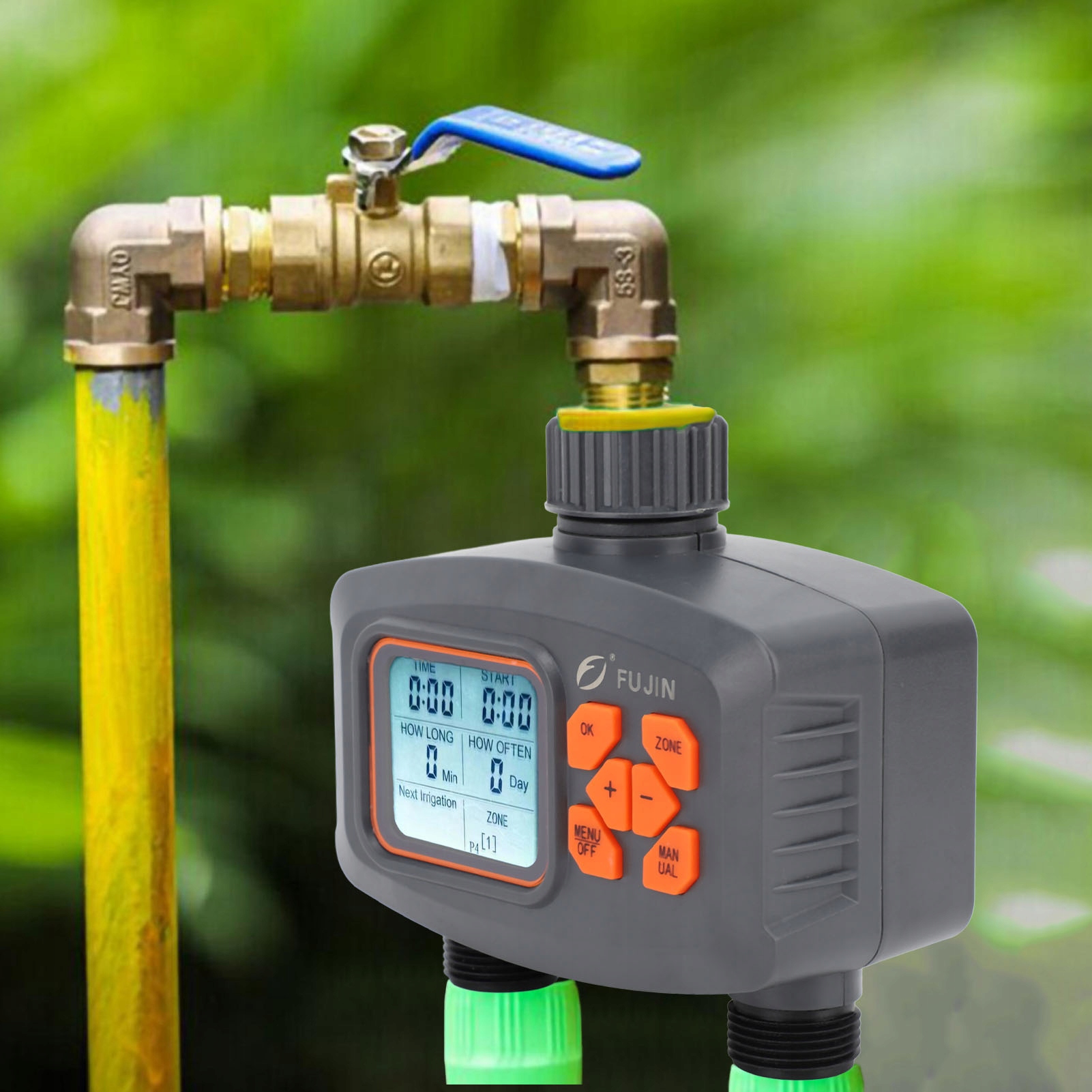 Таймер часу з 2 витяжними шлангами 2-зони лічильника часу для спринклера з датчиком дощу автоматичним контролером зрошення з чоловічим адаптером G3/4 для жінок G1/2