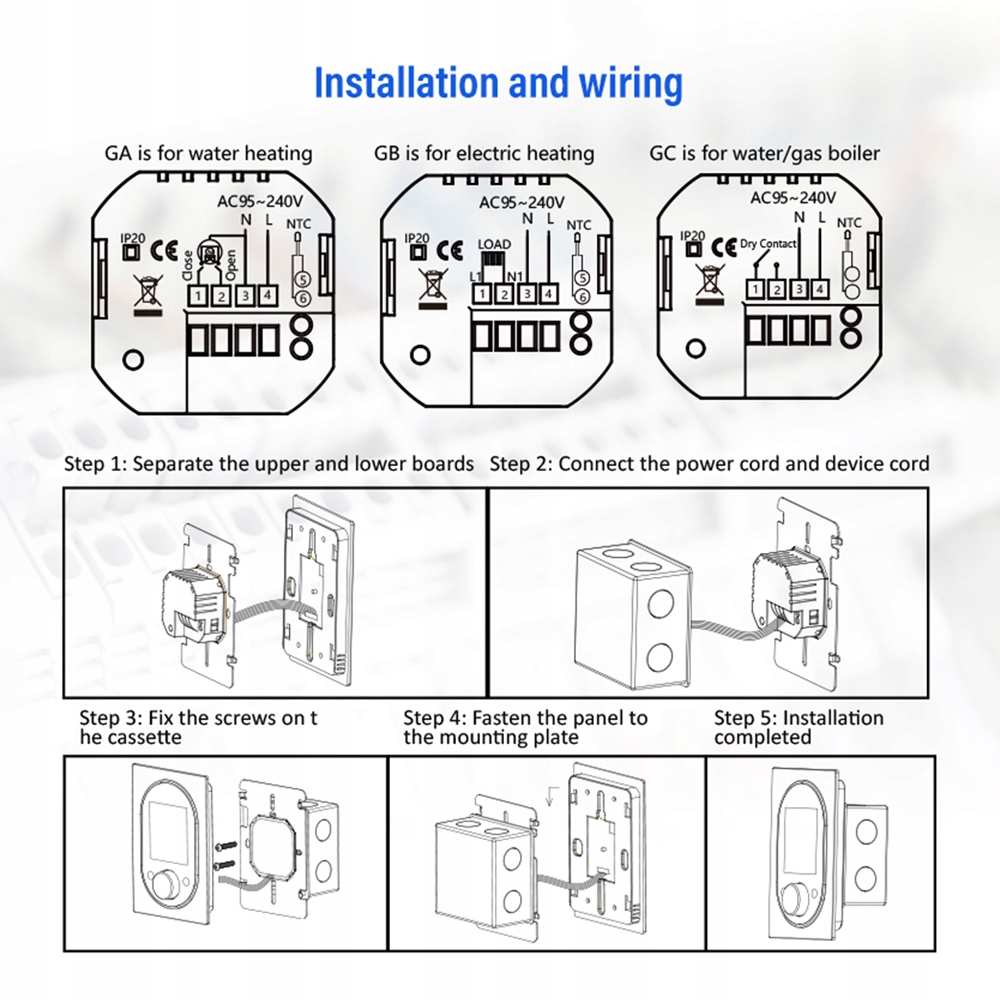 3. Простий у встановленні та використанні: домашній термостат зі зручною установкою на пряжку, інструменти не потрібні. Ультратонка врізна панель ідеально вписується в стіну будь-якого типу. Видима товщина на стіні всього 13,1 мм. Велика ручка з великим сенсорним екраном, більш зручне керування та налаштування.