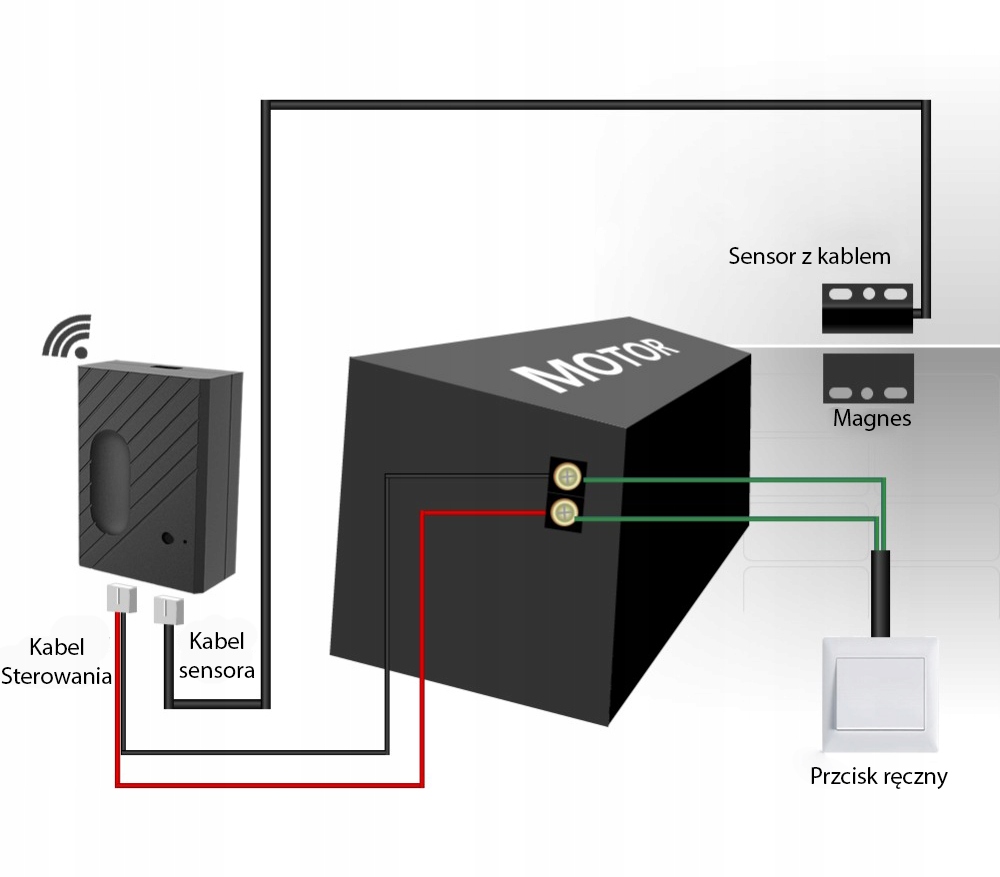 - Контролер під’єднується до контролера воріт до клем кнопок ручного відкриття (встановіть контакт)