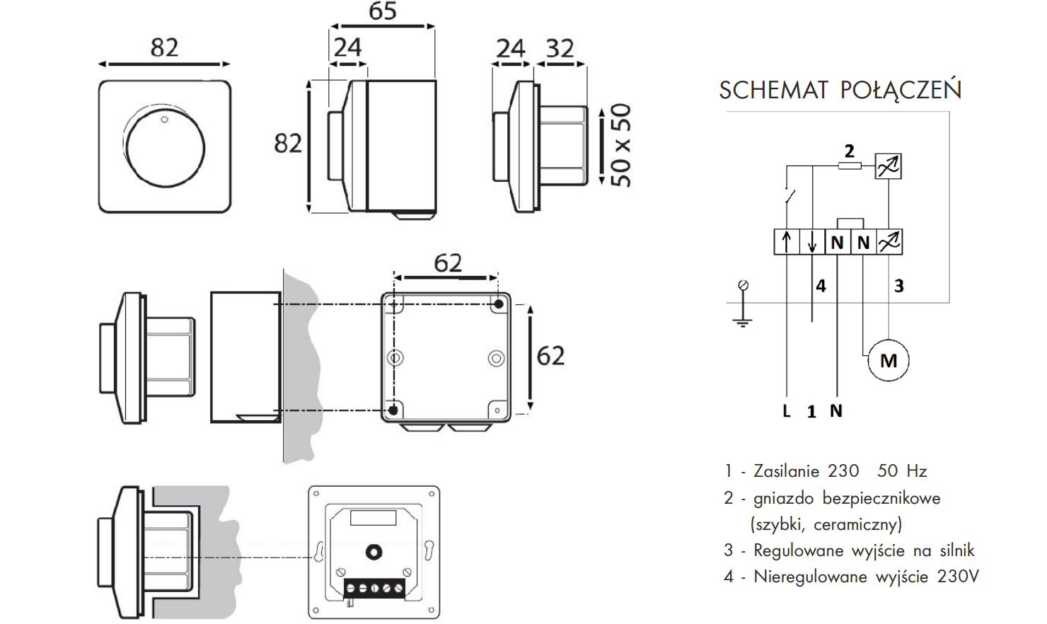 Перед підключенням прочитайте інструкції. Нижче наведена схема з'єднання. Регулятор має додатковий нерегульований фазовий вихід, до якого ви можете підключити, наприклад, електричний обігрівач або пристрій, який повинен працювати одночасно з вентилятором.