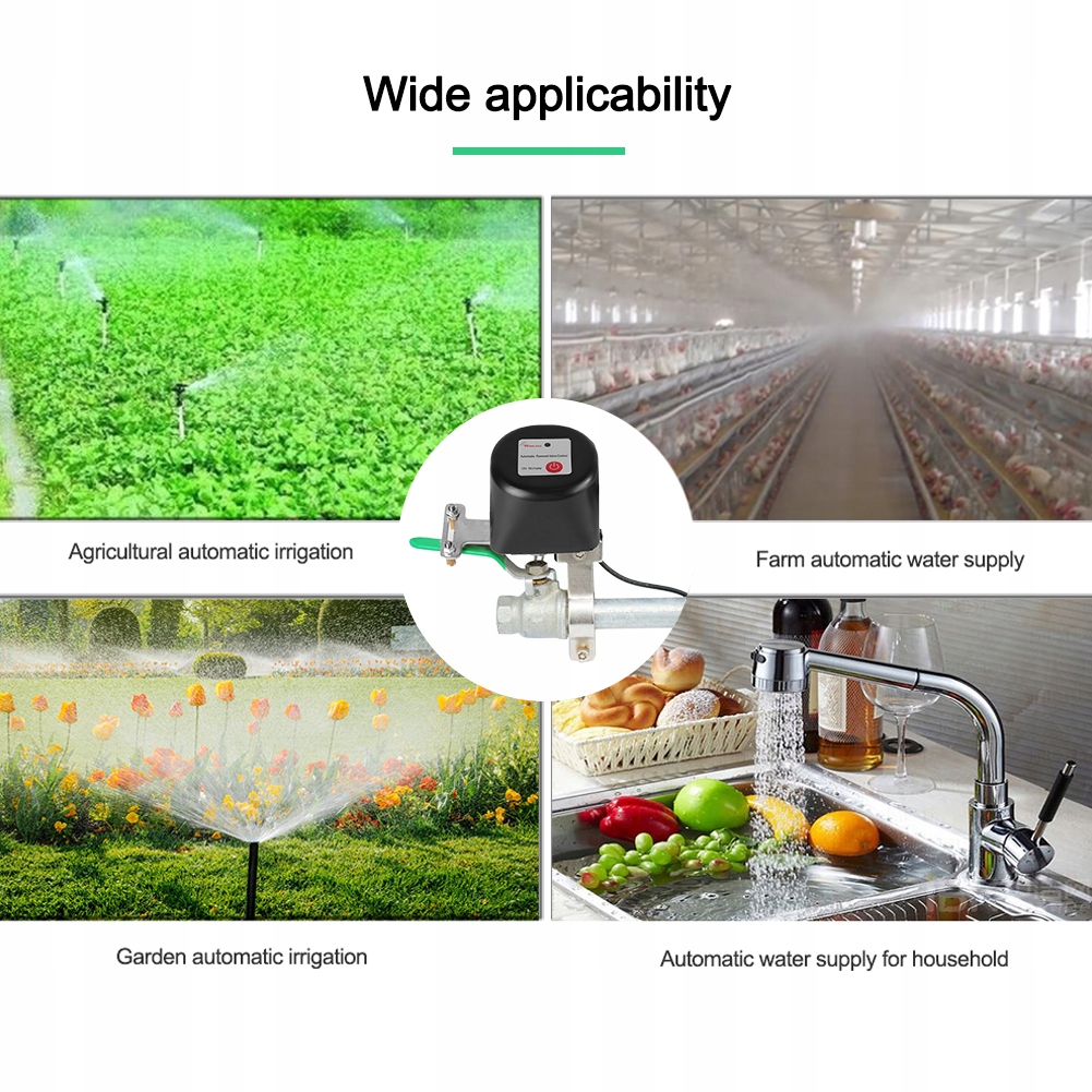 1. Це продукт з інноваційним дизайном, який характеризується малим радіусом дії, низькою вартістю, низьким споживанням енергії та високою надійністю. 2. Розумні клапани Wi-Fi сумісні з Amazon Alexa та Google Home Assistant і дозволяють вимикати/вмикати водяний клапан голосом. 3, він повністю сумісний з бездротовими мережами, ви можете дистанційно керувати клапаном за допомогою смартфона. 4、Він може підтримувати синхронізацію та виявляти умови витоку, що може принести користь вашому життю. 5. Труба не потрібна, проста в установці, зручна у використанні та експлуатації. 6. Мобільний додаток синхронізує вмикання та вимикання клапана регулювання води. Водяний клапан Smart WiFi з функцією локального розподілу. Якщо ви вмикаєте/вимикаєте клапан під час підключення до Wi-Fi, він зможе виконувати заплановані завдання синхронізації без з’єднання Wi-Fi. 7. Щоб уникнути збою живлення, його не можна використовувати. У нижній частині пристрою є ручна муфта, яка дозволяє переміщати важіль, щоб закрити або відкрити клапан. 8, сумісний з кульовим краном водопровідної труби, електричним вимикачем, ручним керуванням, природним газом/рідиною/краном. Підходить для керування водяним клапаном, газовим клапаном, резервуаром для наповнення, обладнанням для зрошення ферм.